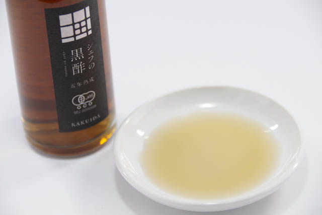 添加物、着色料、保存料を一切使用しておらず、毎日の食事にも使っていただけるように、旨さに磨きをかけた「シェフの黒酢」。